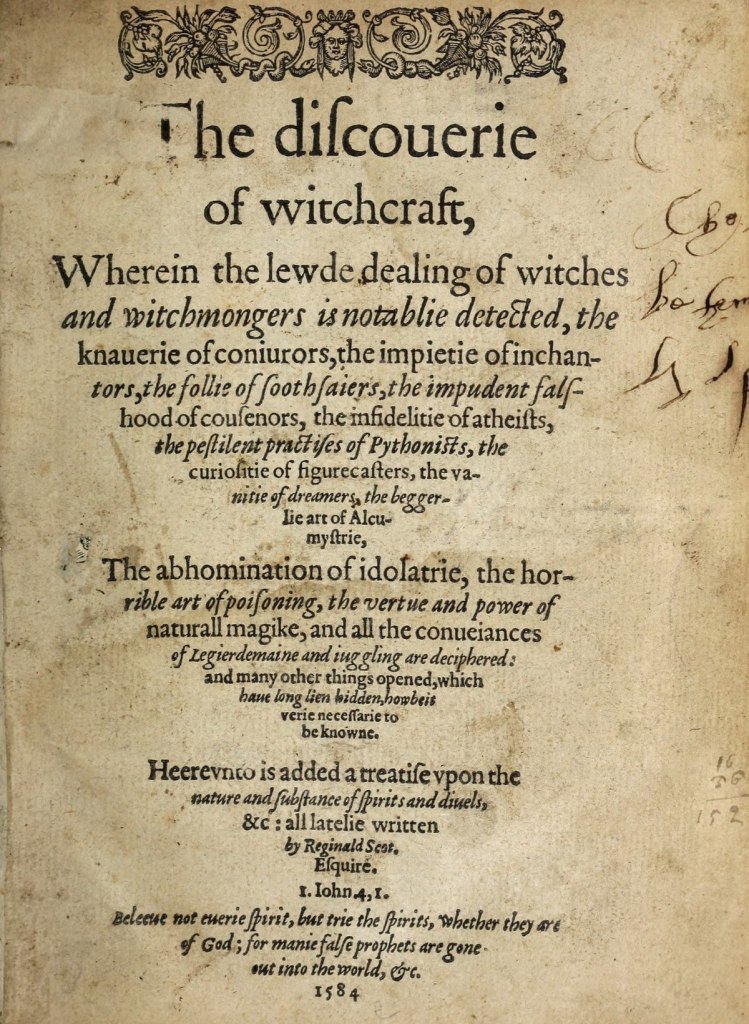 The Discovery Of Witchcraft, first printed in 1584 by Reginald Scot, a English attorney & harsh critic of King James I was one of the first magic expose in English. It was mainly a ideology attack on King James I & his paranoia about witchcraft, it did contain a few chapters explaining sleight of hand with balls, string and …. Coins!